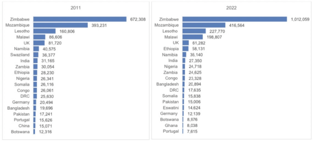 The 2022 South Africa census released yesterday, revealed a significant and diverse foreign-born population in the country, constituting 3% of the total population. With approximately 2.6 million foreign-born individuals, South Africa stands as a melting pot of cultures, backgrounds, and stories. This article delves into the census data to shed light on the top five countries of origin for foreign-born residents, specifically focusing on the challenges and benefits associated with Zimbabweans, who make up the largest group.